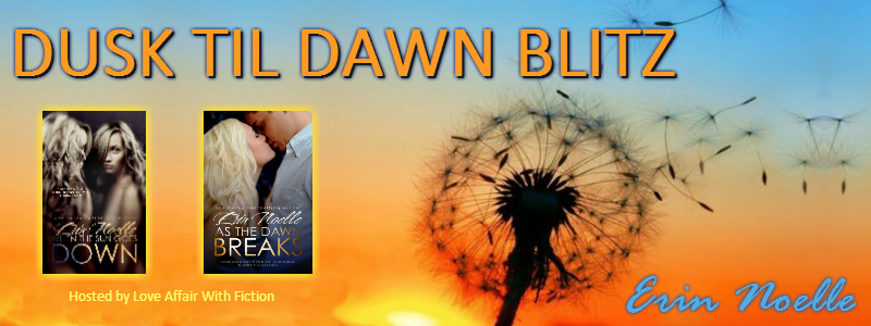 We are pleased to announce the pre-order of As the Dawn Breaks, a stand alone novella in the Dusk Till Dawn Series by Erin Noelle for just 99 cents! And in celebration of the new release, When the Sun Goes Down is on sale for just 99 cents until Release Day on September 15!