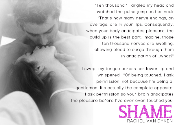 Shame, by Rachel Van Dyken — What can I possibly say to convey my feelings about this book. You know what, I can’t. There are just no words to do this justice. If you thought that the first books in the series moved you, prepare for Shame to rock your boat!