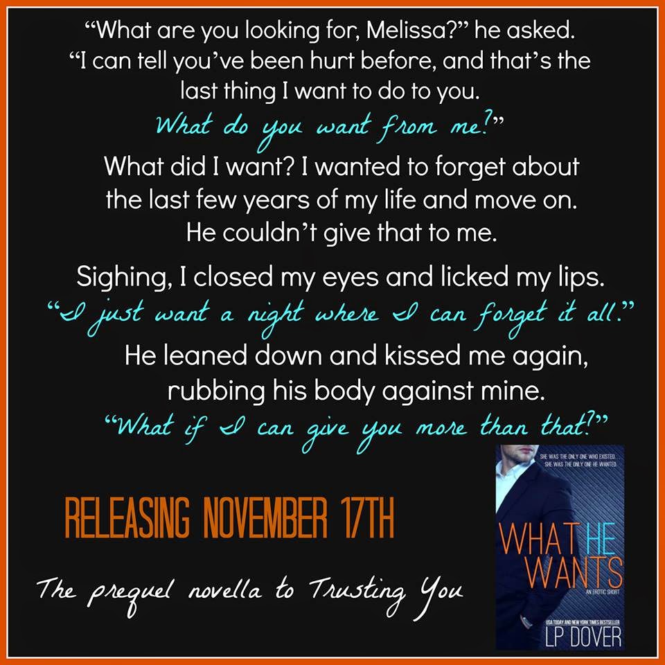 **What He Wants is the prequel novella to the novel, Trusting You (A Second Chances standalone) by New York Times and USA Today Bestselling author, L.P. Dover. Find out what happens in the very beginning when Melissaand Brett meet for the first time. That fateful night has never been told until now.**
