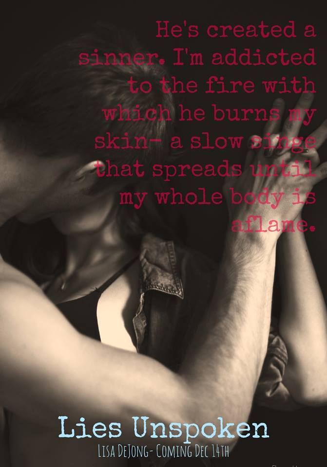 Lisa De Jong is a wife, mother and full-time number cruncher who lives in the Midwest. Her writing journey involved insane amounts of coffee and many nights of very little sleep but she wouldn’t change a thing. She also enjoys reading, football and music.