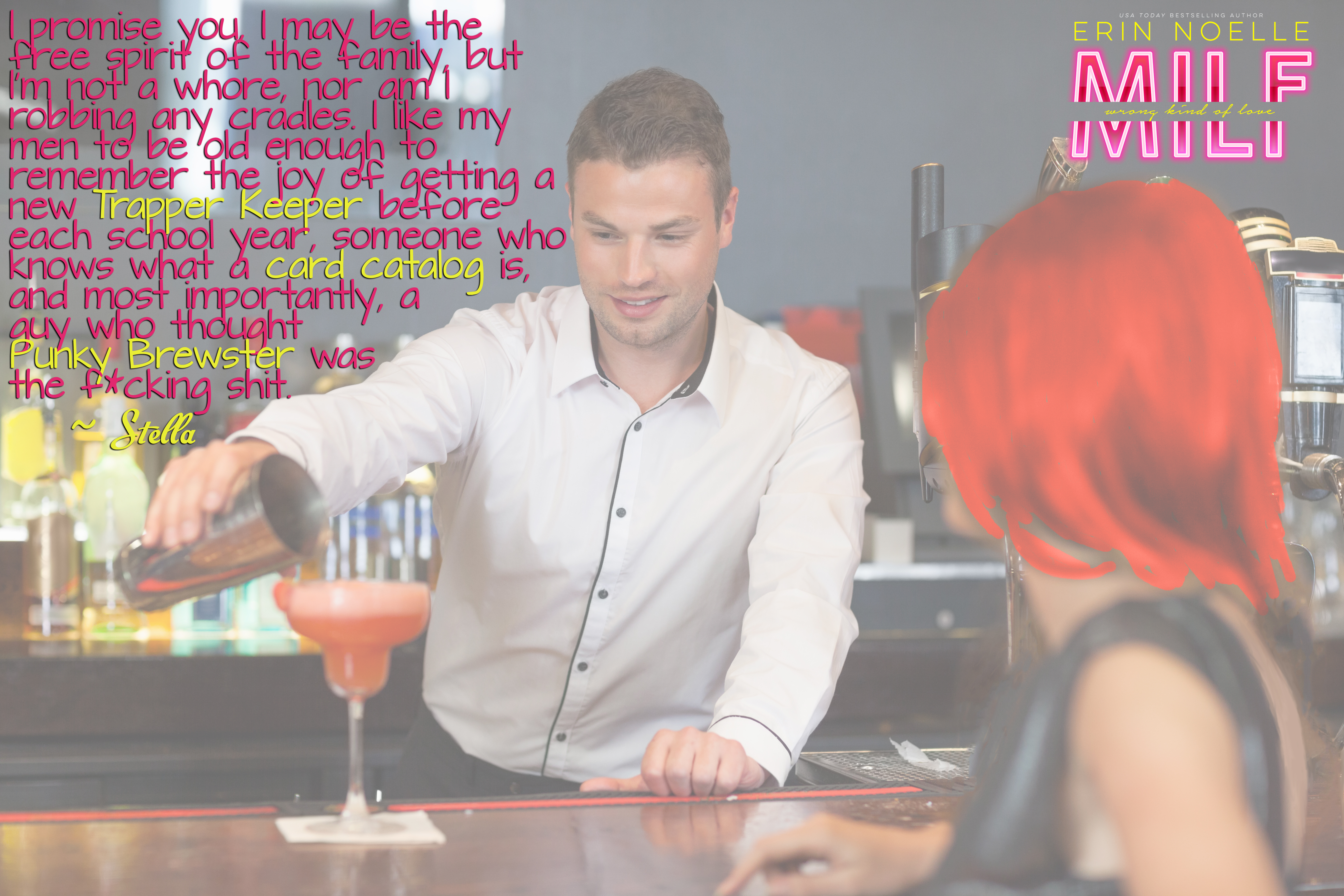 She wipes the escaped tears from her cheek then pats my arm soothingly. “I promise you, I may be the free spirit of the family, but I’m not a whore, nor am I robbing any cradles. I like my men to be old enough to remember the joy of getting a new Trapper Keeper before each school year, someone who knows what a card catalog is, and most importantly, a guy who thought Punky Brewster was the fucking shit.”