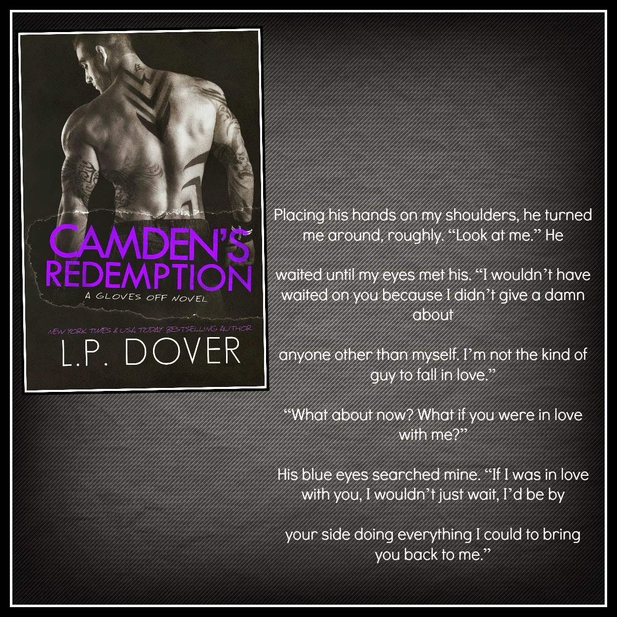 New York Times and USA Today Bestselling author, L.P. Dover, is a southern belle residing in North Carolina along with her husband and two beautiful girls. Before she even began her literary journey she worked in Periodontics enjoying the wonderment of dental surgeries.