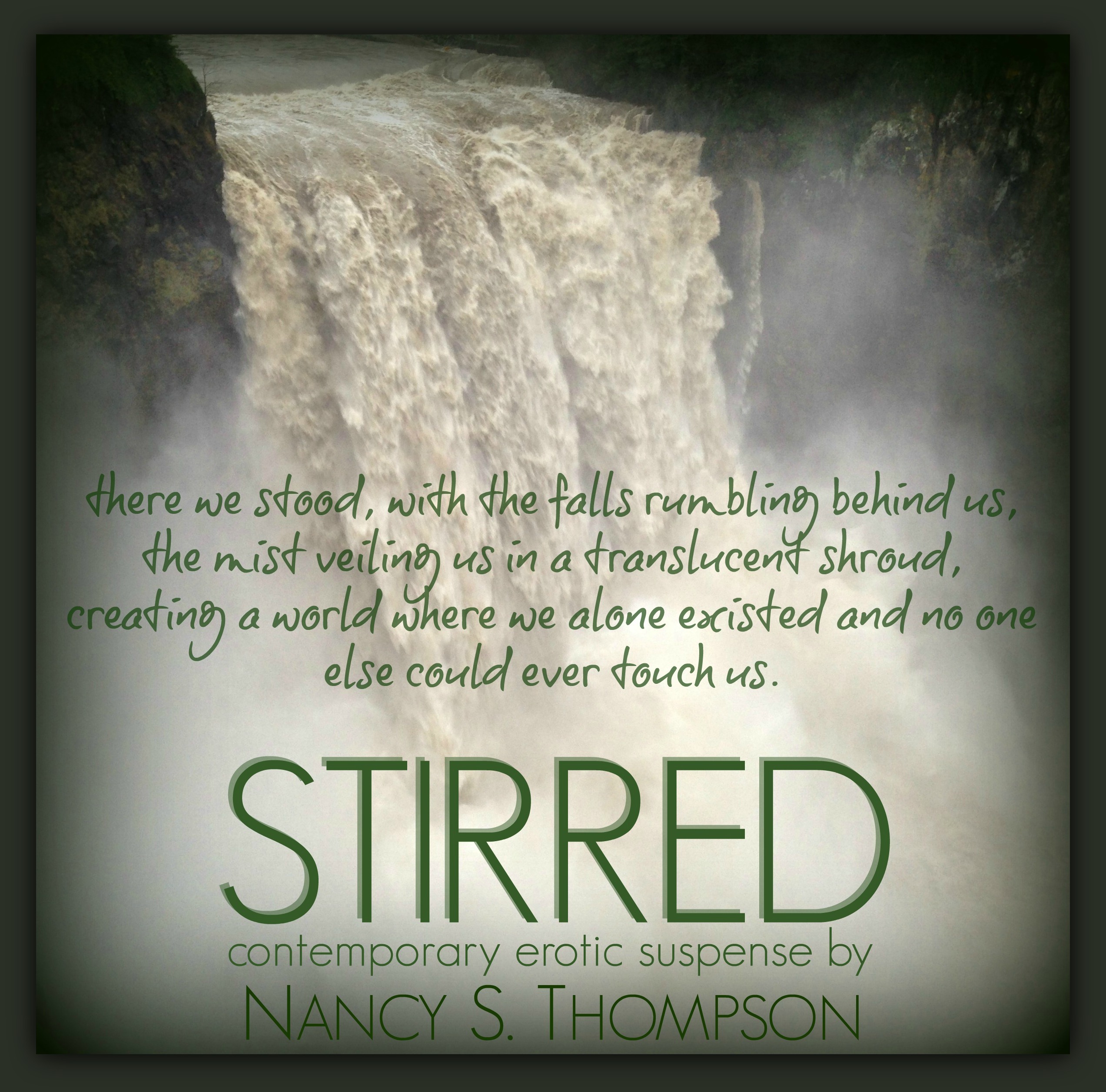 With a deep sigh, Eden rested her cheek against my chest, and I buried my face in the crook of her neck and shoulder. And there we stood, with the falls rumbling behind us, the mist veiling us in a translucent shroud, creating a world where we alone existed and no one else could ever touch us.