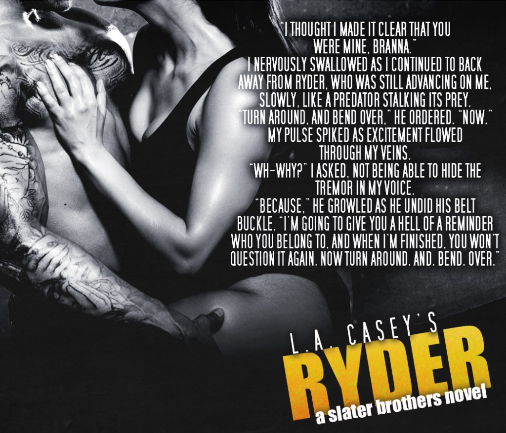 Things between Ryder and Branna are at rock bottom, and Ryder knows it. Not only will he be taking on a force that could destroy his whole family, but he will be battling tooth and nail to save his relationship and keep the love of his life by his side.