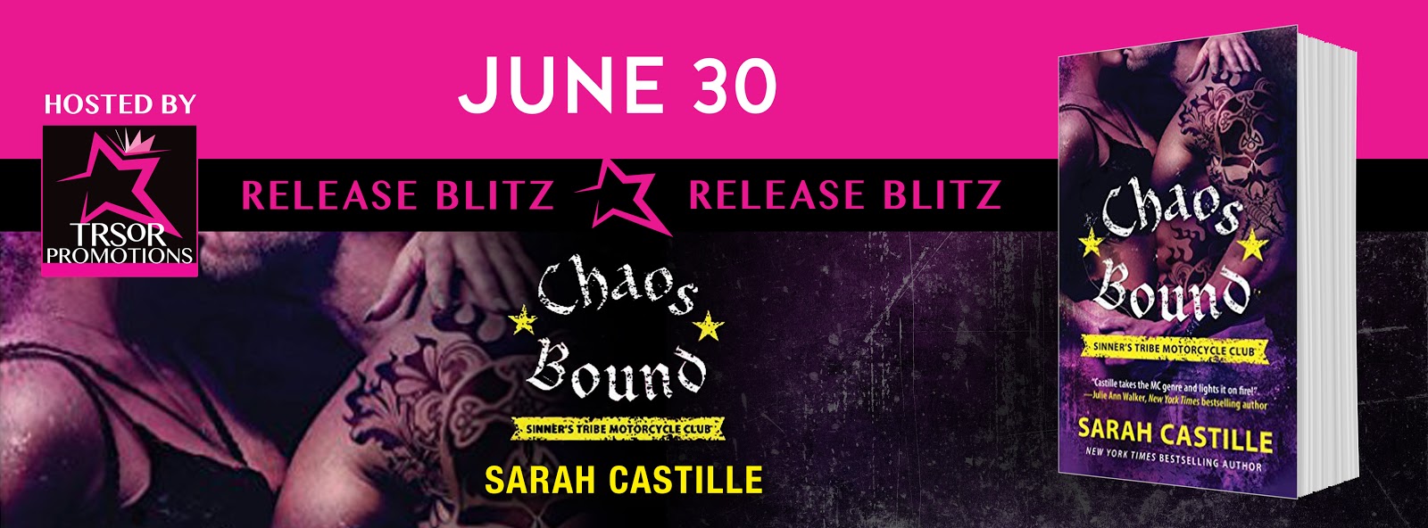 Chaos Bound is the fourth book in a full-length, standalone series by New York Times bestselling author, Sarah Castille, featuring red-hot, hard-riding bikers and the women who can’t help but love them